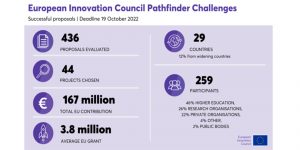 The Commission selected 44 new projects under the 2022 EIC Pathfinder call for cutting edge research projects to achieve breakthroughs in six strategic areas. The successful projects were chosen among 436 submitted eligible proposals and will receive up to €167 million of EU funding (on average €3.8 million per project). EIC Programme Managers were directly involved in setting the …