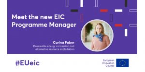 The European Innovation Council (EIC) warmly welcomes its 10th Programme Manager. Carina Faber covers the field of renewable energy conversion and alternative resource exploitation. One of her focus areas will be the production and utilisation of alternative fuels and chemicals. It means that renewable energy and simple feedstock, such as CO2, nitrogen or waste are employed …