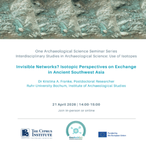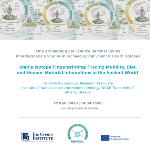 We are pleased to invite you to the second lecture in the One Archaeological Science Seminar Series. Interdisciplinary Studies in Archaeological Science: Use of Isotopes. Stable Isotope Fingerprinting: Tracing Mobility, Diet, and Human–Material Interactions in the Ancient World by Dr Dafni Kyropoulou (Institute of Nanoscience and Nanotechnology, NCSR “Demokritos”) 22 April 2026 | 14:00–15:00 Hybrid event …