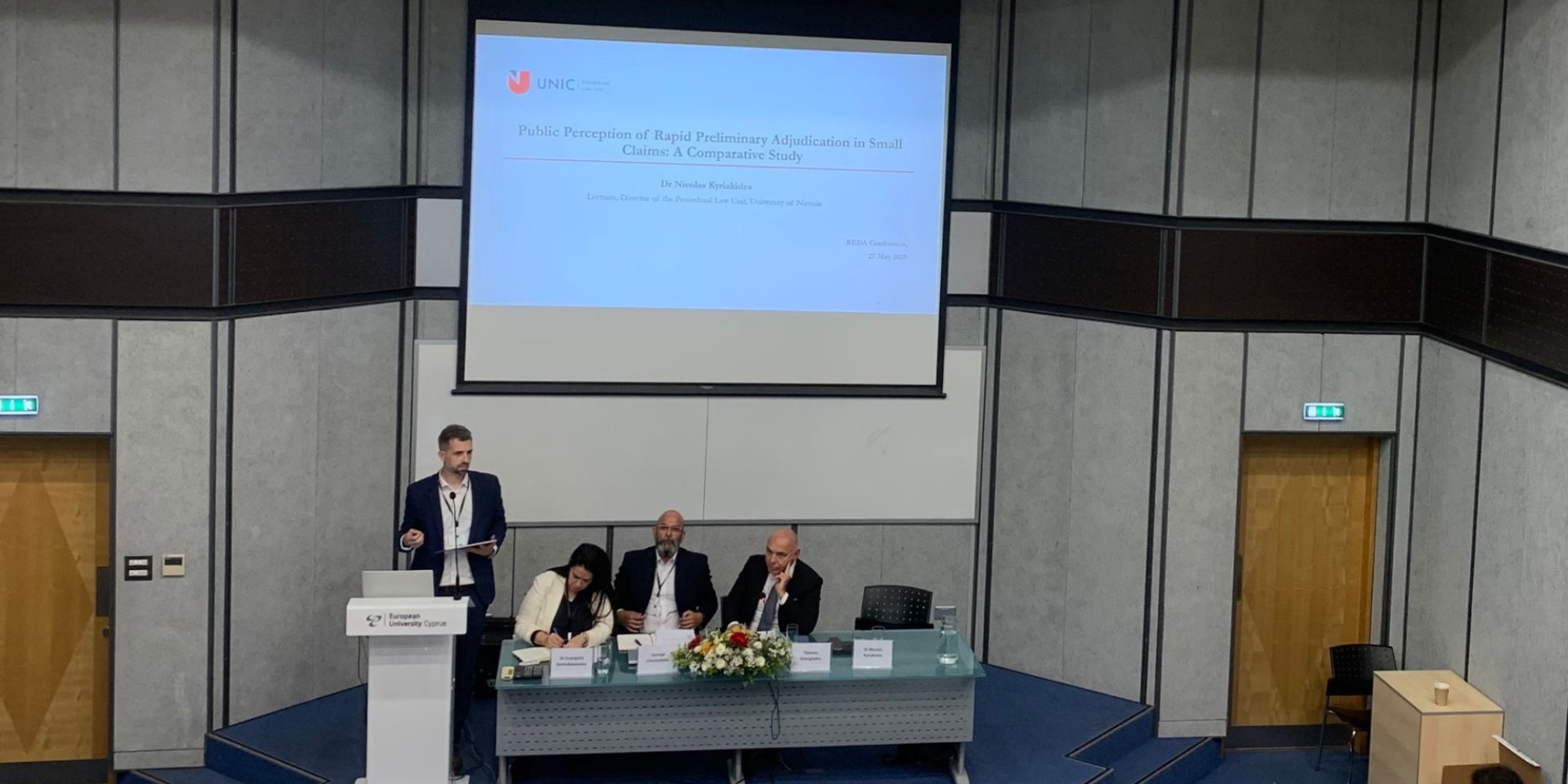 Dr. Kyriakides presented the Unit’s latest research project, “Public Perception of Rapid Preliminary Adjudication in Small Claims”, which explores how the general public in England and Wales, Germany and Cyprus perceives the fairness, efficiency and trustworthiness of AI-assisted adjudication in small claims procedures. The study identifies key differences and shared challenges across jurisdictions, offering valuable insight into the future of access to justice in an increasingly digitised legal environment.